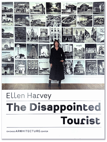 Exhibition catalog for Ellen Harvey: The Disappointed Tourist which contains images of all 316 paintings completed for The Disappointed Tourist to date. Published 2026 by the Chicago Architecture Center. To purchase, please click here.